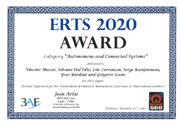 Our paper on the formal verification of autonomy in earth observation satellites has been accepted at the 10th International Congress and Exhibition on Embedded Real-Time Software and Systems (ERTSS 2020).
